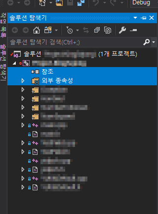 언제부턴가 저런식으로 솔루션 탐색기에 '외부 종속성' 필터가 생겼다.