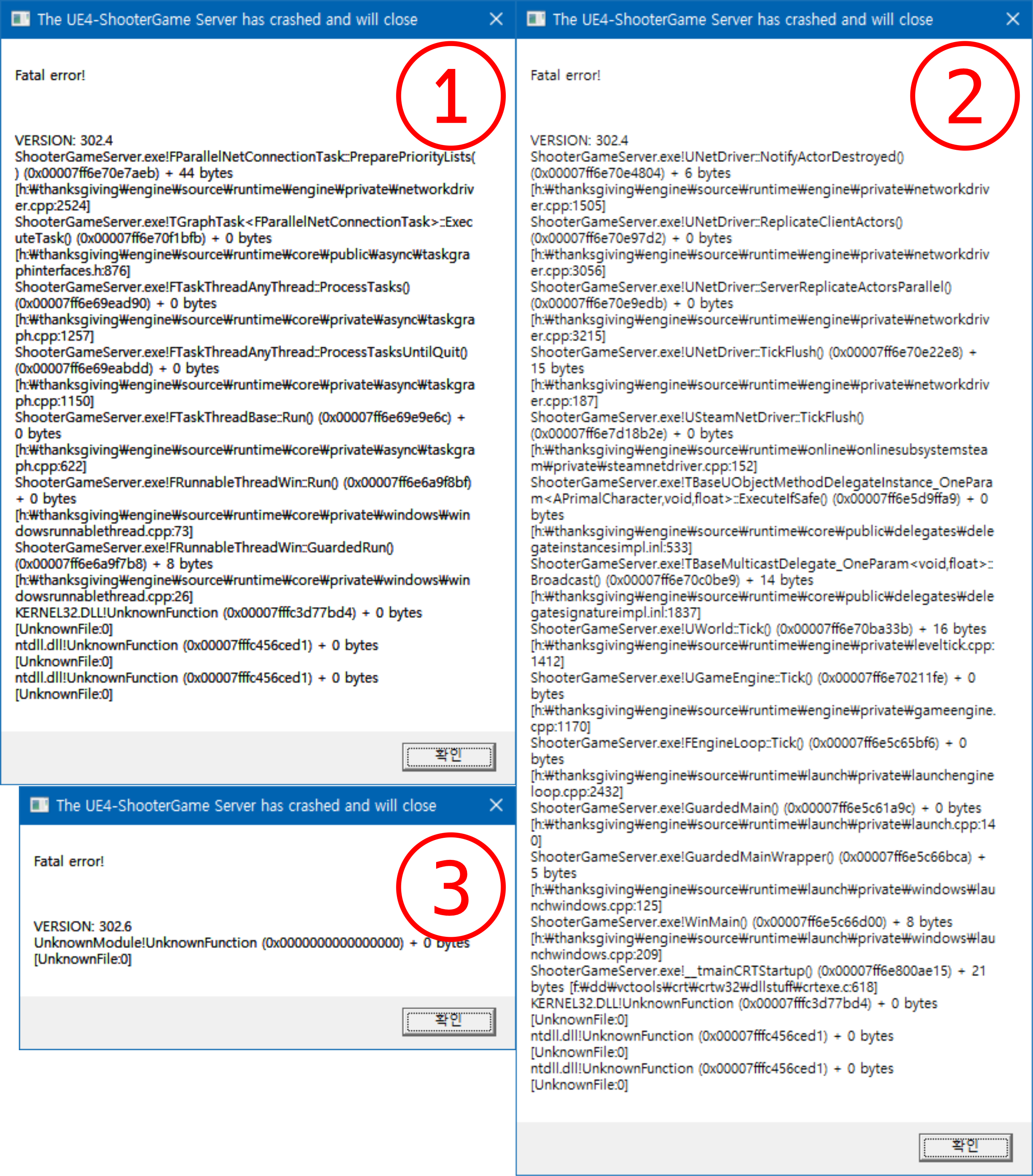위의 3가지 페이탈 에러는 Ark 자체의 버전 업데이트 - Steam 업로드 과정에서 생기는 에러로 추측됨