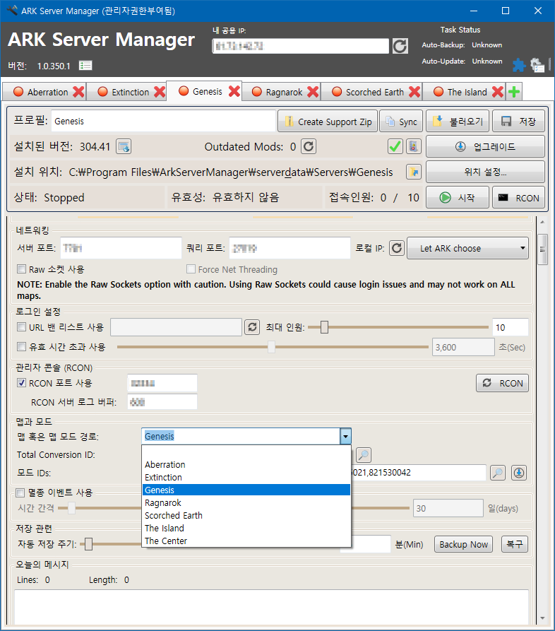 출처 - https://arkforum.de/thread/25659-ark-server-manager-genesis-update/